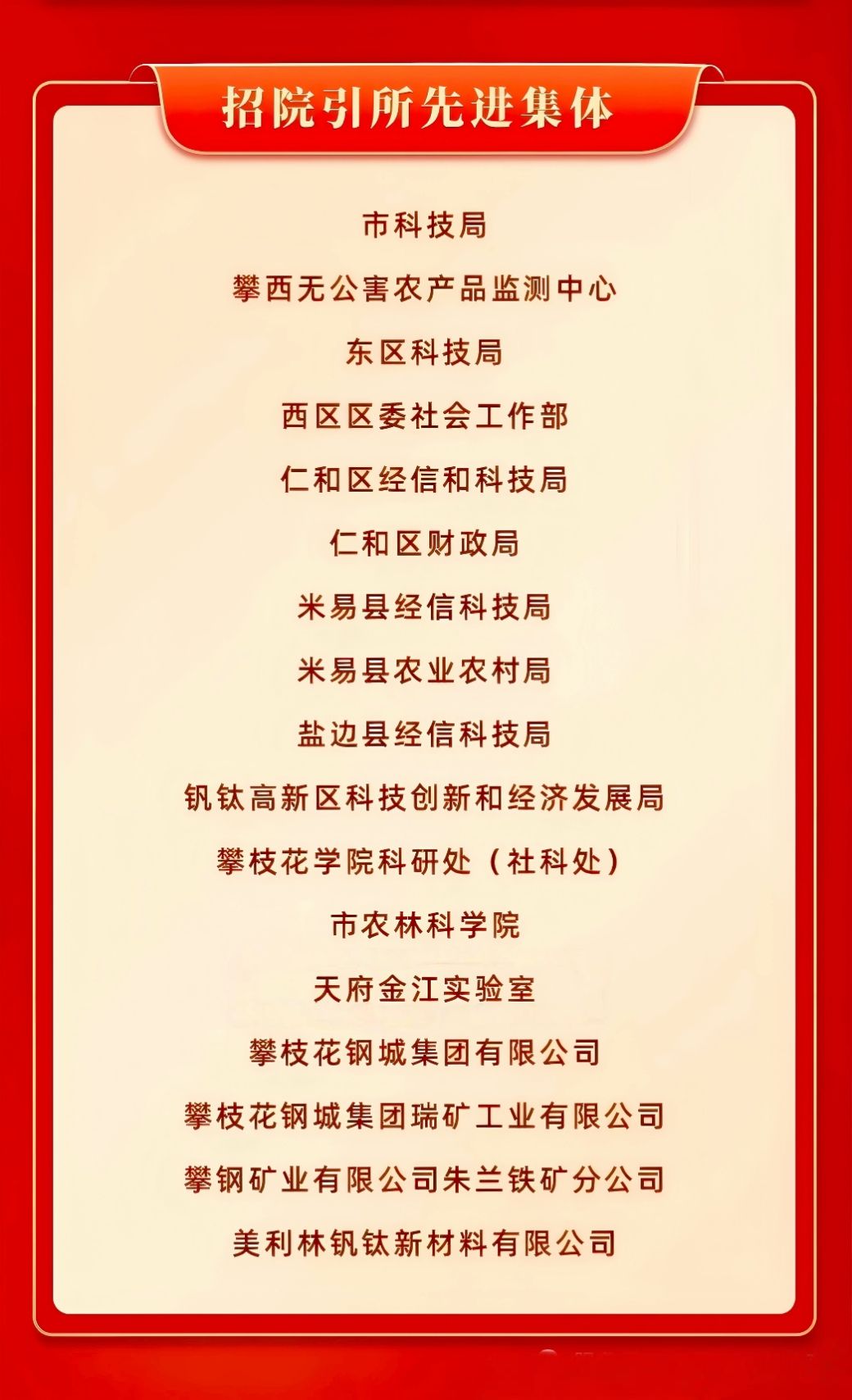 2026年2月26日,攀枝花市2026年深化共富试验区建设推进大会隆重举行。攀枝花学院科研处(社科处)荣获2025年度攀枝花市招院引所工作先进集体。